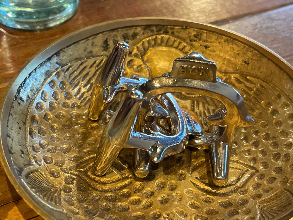 私が座ったテーブルの上には知恵の輪がさりげなく置いてあり、待ち時間に退屈せず過ごせました。