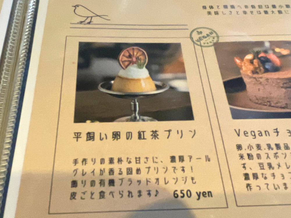 今回のお目当ては、アールグレイが上品に香る「平飼い卵の紅茶プリン」。
